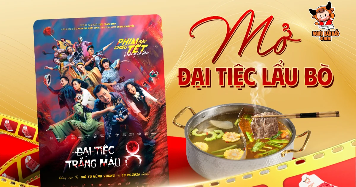 Nếu bạn đang tìm kiếm một sự kết hợp hoàn hảo giữa vị giác bùng nổ và cảm xúc điện ảnh đỉnh cao, thì đây chính là thông tin không thể bỏ lỡ. Ngưu Bảo Bảo chính thức tung “kèo thơm” cực hot: Vừa thưởng thức lẩu bò Triều Châu trứ danh, vừa nhận vé xem siêu phẩm Đại Tiệc Trăng Máu 8 hoàn toàn miễn phí!